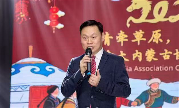 中国驻多伦多总领馆副总领事程洪波先生出席晚宴并致辞。他高度赞扬了内蒙古协会在凝聚侨胞,弘扬民族文化方面所做的努力。他指出随着中加关系向好,广大海外侨胞在加拿大将拥有 更广阔的发展空间和平台。他寄语广大内蒙古籍的侨胞在马年能够“一马当先”,跨越障碍,发挥联通中加的独特桥梁作用,促进中加的民间交流和合作发展。