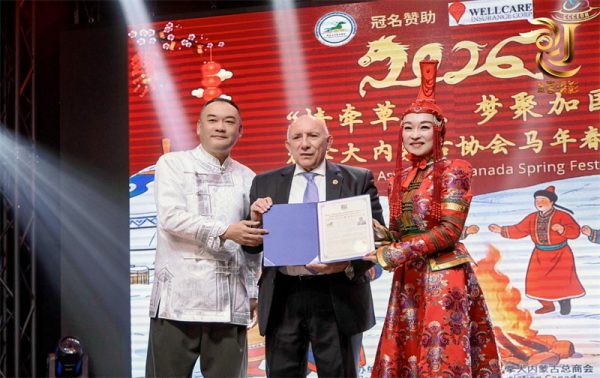 加拿大内蒙古协会、总商会会长Sophia Lian 表示:内蒙古是草原儿女永远的精神家园,无论走到哪里,家乡的情怀始终萦绕心间。今天的晚会将是一场独特的蒙古族非物质文化遗产的春节庆典。整台晚会将向大家展示传统的蒙古族服饰文化、礼仪,伴着热闹的蒙古歌舞,精彩的杂技,京剧表演、绘画、非遗花馍展示、魔术等节目和各种互动及无数轮的幸运抽奖,使所有来宾及老乡都能感受到我们内蒙古人骨血中透出的热情,温度和豪迈!在室外严寒的气候中,协会特别为大家准备了2只香喷喷的烤全羊、丰富的菜肴、各式美酒、冰糖葫芦、呼盟牛肉干及蒙牛奶酪等具有蒙古特色的传统美食,我们两位老乡联合赞助了传统蒙古烧麦、Sophia亲自熬制了香醇的奶茶,真诚欢迎所有贵宾及乡亲们。希望大家在欢歌笑语中度过一个难忘的夜晚!同时衷心感谢主题赞助商WELLCARE INSURANCE 及所有30多位赞助商的大力支持!